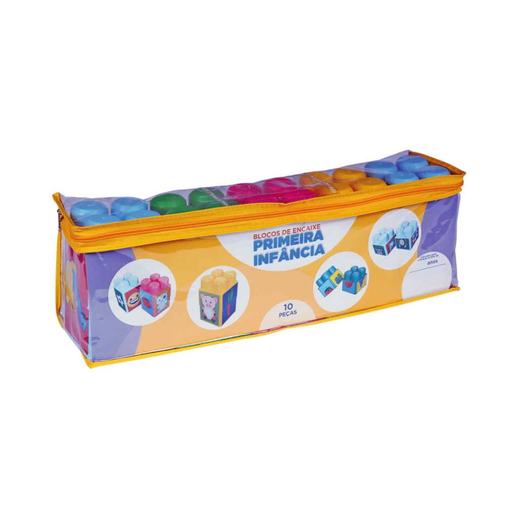 Confeccionado em plástico polipropileno atóxico de alto brilho, contém peças coloridas divididas em duas partes encaixáveis. As peças são ilustradas nos quatro lados, formando vinte quebra-cabeças de: expressões faciais, frutas, legumes, brinquedos, animais domésticos e selvagens. Contém 10 peças de dimensões seguras, para que não sejam engolidas. Acondicionado em sacola de PVC cristal com zíper e alça.