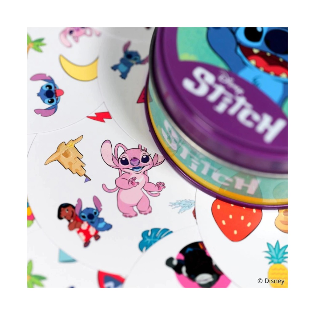Edição especial do clássico jogo de observação e reflexos rápidos, Dobble, agora com os símbolos das cartas inspirados no filme Lilo & Stitch!