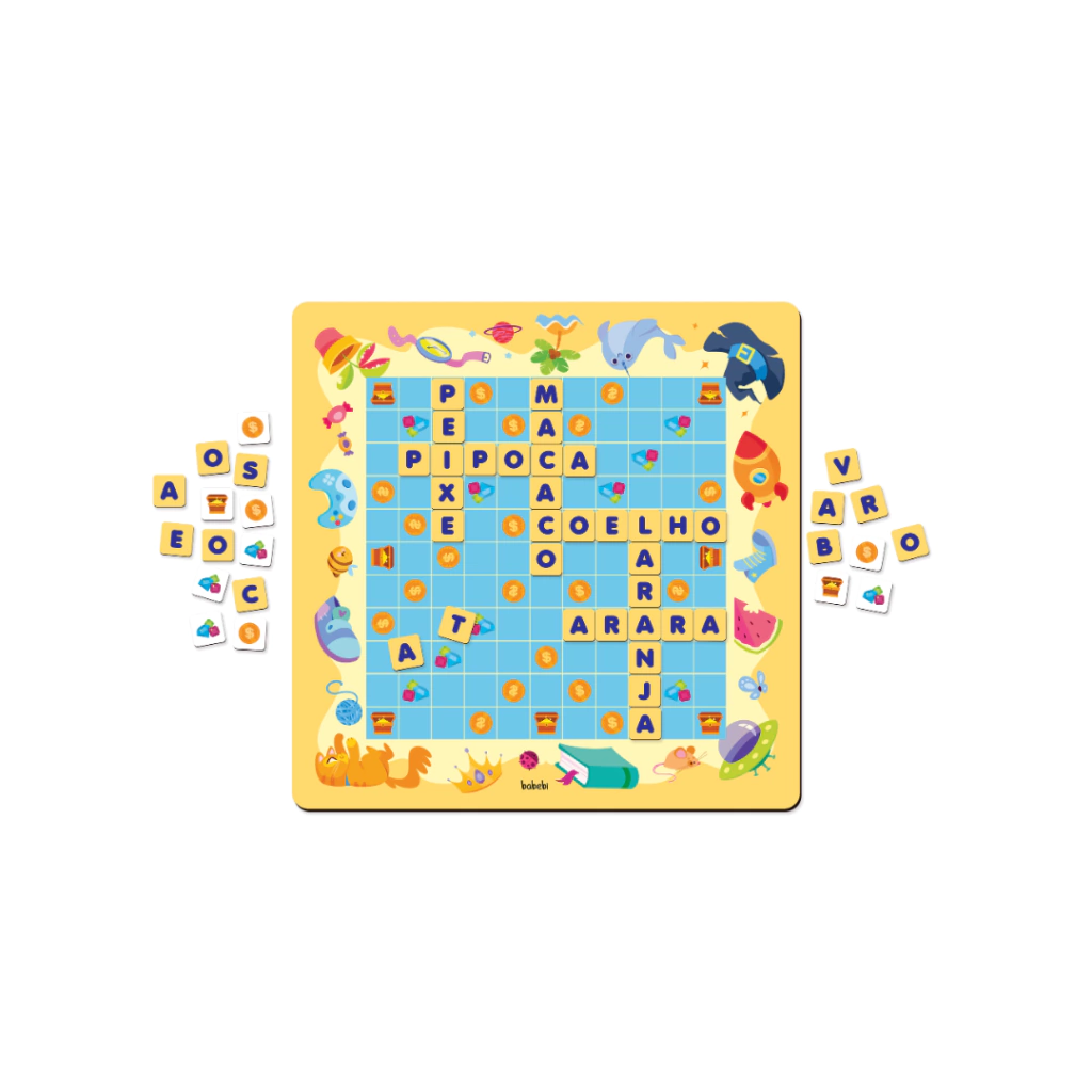 Com um tabuleiro interativo, dezenas de letras e fichas de pontos, as crianças desafiam a criatividade e o raciocínio para formar diversas palavras. Quanto mais palavras, maior a pontuação e mais próximo do tesouro elas estarão! Ideal para estimular a alfabetização, ampliar o vocabulário e desenvolver o pensamento estratégico. Perfeito para brincar em família ou na escola!