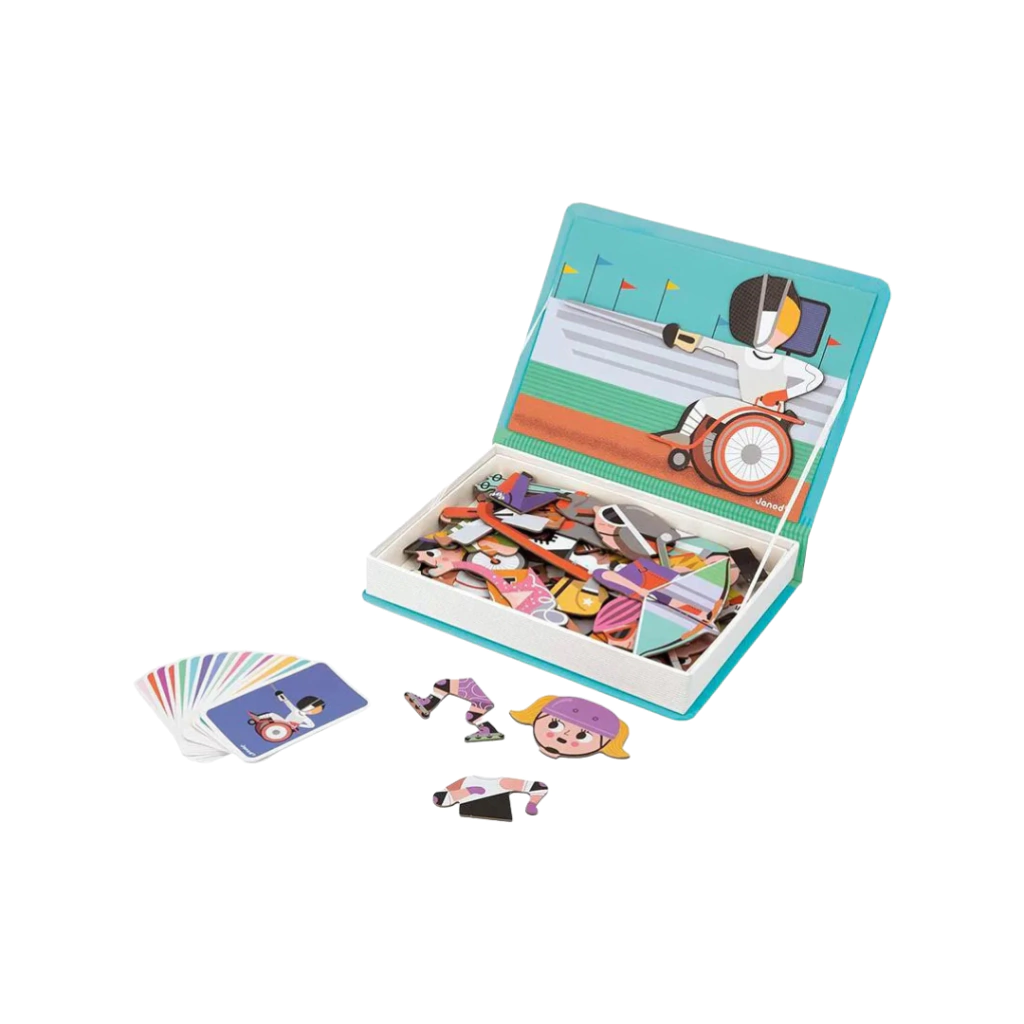 A Janod traz uma coleção de Livros Magnéticos com diversos temas , para as crianças brincarem e desenvolverem criatividade, imaginação, coordenação motora e algumas atividades do cotidiano.